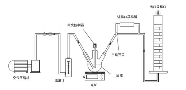 如圖1所示,在裝滿5g顆;钚蕴康牟蓸庸艿娜肟诤统隹谔幨占3分鐘的模擬烹飪油煙樣品。采樣重復(fù)3次。取出樣品管中的顆;钚蕴浚D(zhuǎn)移到燒瓶中,并使用超聲儀用15mL四氯化碳洗滌5分鐘。收集清潔液并將其轉(zhuǎn)移到另一個燒瓶中(標(biāo)記為A)。用10mL四氯化碳再次洗滌顆;钚蕴浚⑹占鍧嵰翰⑵滢D(zhuǎn)移到燒瓶A中。