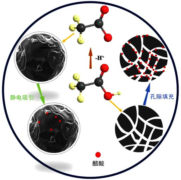 圖3:活性炭對乙酸的吸附機理。