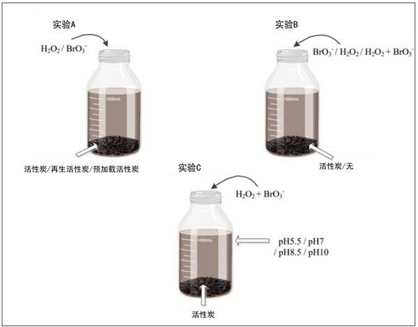 在飲用水處理過程中,使用臭氧和過氧化氫的高級(jí)氧化工藝可能會(huì)產(chǎn)生副產(chǎn)品、殘留的過氧化氫和溴酸鹽。由于這些副產(chǎn)物可能會(huì)對(duì)后續(xù)含水層系統(tǒng)的生態(tài)系統(tǒng)造成不良影響,因此在流入含水層系統(tǒng)之前需要將其處理至低濃度。本次主要是評(píng)估水中高級(jí)氧化工藝中殘留的過氧化氫和溴酸鹽副產(chǎn)物是否能用活性炭去除,并研究其背后的機(jī)制。