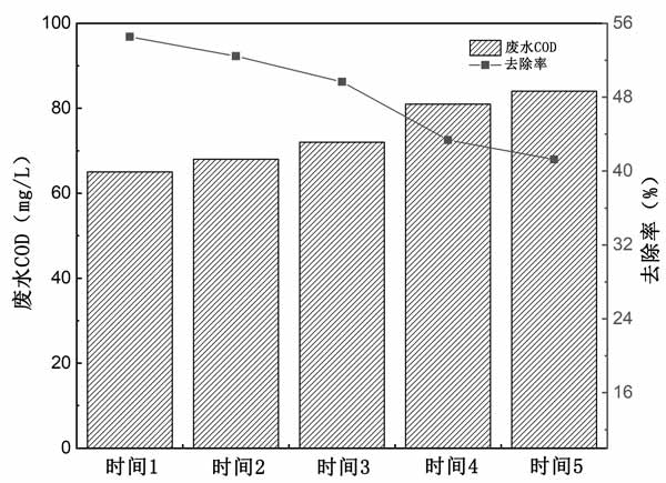 為了評(píng)估活性炭的可重復(fù)使用性,對(duì)活性炭進(jìn)行了吸附-解吸實(shí)驗(yàn)。經(jīng)過四個(gè)吸附-解吸循環(huán)后,活性炭吸附對(duì)焦化廢水中COD的吸附效率僅降低了約10%(圖3),表明活性炭具有良好的可重復(fù)使用性。此外,使用NaOH作為再生劑的方法具有成本效益高的優(yōu)點(diǎn)?傊@些表明本研究中生產(chǎn)的活性炭在實(shí)際廢水處理中具有巨大的應(yīng)用潛力。