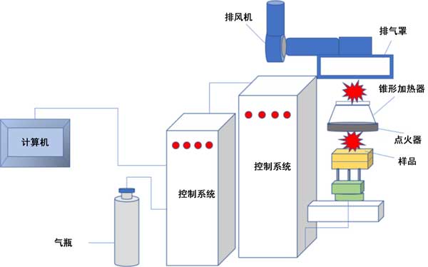 圖1:錐形量熱儀測(cè)試裝置結(jié)構(gòu)示意圖。