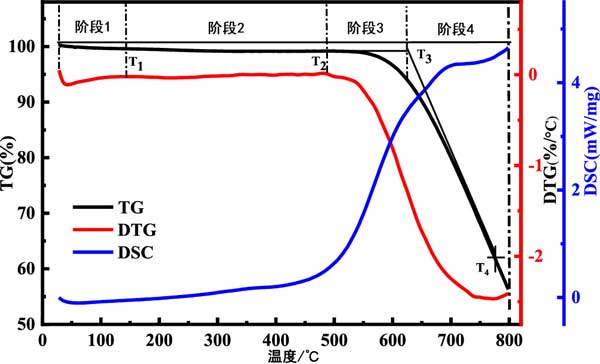 第一階段是水蒸發(fā)和解吸階段,從開(kāi)始到T1。此階段活性炭樣品和吸熱DSC的質(zhì)量損失主要是由于表面和孔隙內(nèi)部的水蒸發(fā)以及氣體解吸造成的。