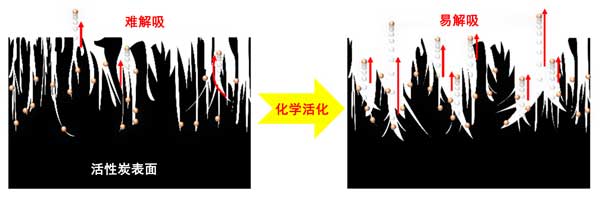 活性炭表面微孔體積與外部孔體積之比越高,解吸反應(yīng)就越困難,因?yàn)橐盐降臍怏w必須通過(guò)復(fù)雜而長(zhǎng)的通道釋放。相反,較低對(duì)應(yīng)于表面上較大體積的大直徑孔。即使吸附物被深深地吸附到活性炭表面,解吸反應(yīng)也可以沿著寬闊而簡(jiǎn)單的通道輕松快速地進(jìn)行。也就是說(shuō),活性炭表面的比率越高,解吸反應(yīng)受到的抑制程度就越大,從而導(dǎo)致吸附容量越高。
