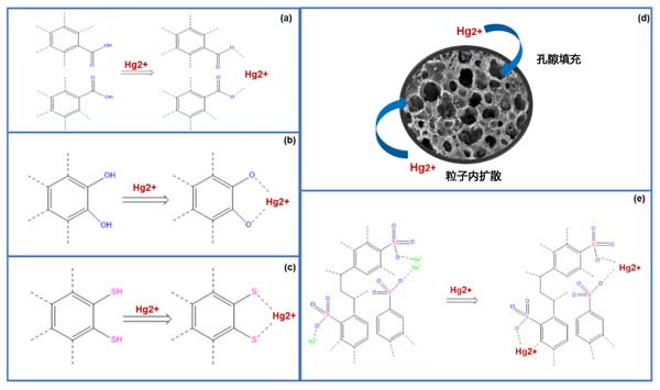 表面絡(luò)合:Hg(II)與–SH、–S–形成穩(wěn)定配位鍵;