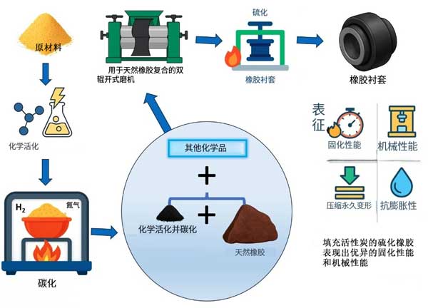 硫化橡膠襯套作為重要的機(jī)械減震元件,廣泛應(yīng)用于汽車、航空航天、機(jī)械制造等領(lǐng)域。然而,傳統(tǒng)橡膠襯套在生產(chǎn)和使用過(guò)程中存在揮發(fā)性有機(jī)物釋放、力學(xué)性能不足、阻燃性能欠佳等問(wèn)題。近年來(lái),隨著環(huán)保要求的提高和產(chǎn)品性能需求的提升,活性炭作為一種多功能填料在橡膠制品中的應(yīng)用受到廣泛關(guān)注。活性炭不僅具有發(fā)達(dá)的孔隙結(jié)構(gòu)和巨大的比表面積,還表現(xiàn)出優(yōu)異的吸附性能和補(bǔ)強(qiáng)效果,為硫化橡膠襯套的性能優(yōu)化提供了新的解決方案。