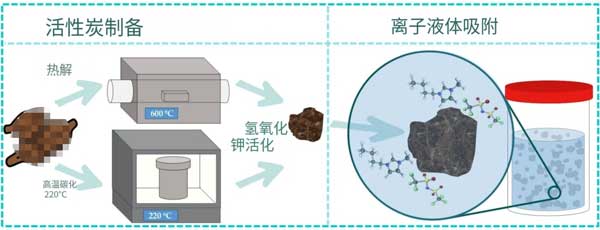 目前,處理含水相中離子液體的方法包括高級(jí)氧化法、生物降解法、膜分離法和吸附法等。其中,吸附法因其操作簡(jiǎn)便、成本相對(duì)較低、設(shè)計(jì)靈活且通常不產(chǎn)生有害副產(chǎn)物等優(yōu)勢(shì),被認(rèn)為是最具應(yīng)用前景的技術(shù)路徑之一。吸附法的核心在于吸附劑;钚蕴孔鳛樽顐鹘y(tǒng)且應(yīng)用最廣泛的吸附劑,具有發(fā)達(dá)的孔隙結(jié)構(gòu)、巨大的比表面積和豐富的表面化學(xué)官能團(tuán),對(duì)多種有機(jī)污染物展現(xiàn)出卓越的吸附能力。然而,商業(yè)活性炭生產(chǎn)成本較高,且對(duì)特定污染物(如離子液體)的吸附選擇性和容量仍有優(yōu)化空間。
