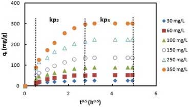 k p2(mg / g  h 1/2 k p3(mg / g  h 1/2 C 2 C 3 R 22 R 32