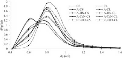 下圖顯示了改性活性炭的微孔尺寸分布。隨著孔隙變寬,椰殼活性炭的平均孔徑由于HNO 3而增加,而Ca(NO 3)2則減少。然而,煅燒表現(xiàn)出最大的孔徑減小,因為 形成平均尺寸為0.4nm的更窄的微孔。煅燒樣品顯示在比那些胺化Ca的碳的微孔更好的改善(NO 3)2,其可有效地提高二氧化碳物理吸附。這可能是由于在相鄰孔壁上形成更多的CaO,導(dǎo)致孔隙空間減少。