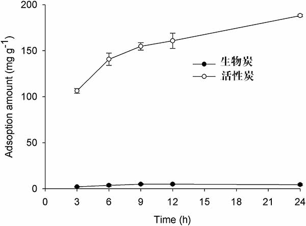 圖2.活性炭和生物炭上氯化苦的吸附量。