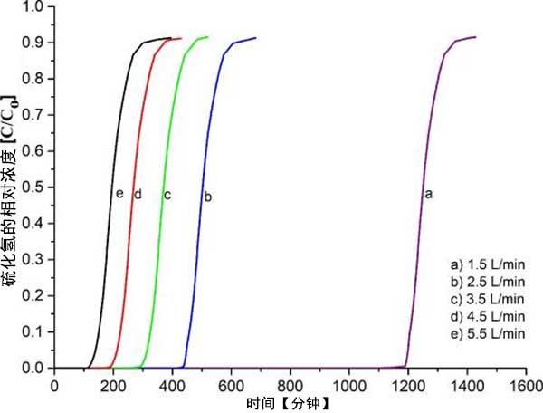 通過使用經(jīng)受不同操作參數(shù)的混合氣體測試活性炭性能,例如流速,所用長度床,所用氣體類型和活性炭。為了確定吸附容量,穿透點(diǎn)和飽和點(diǎn)分別表示硫化氫濃度何時(shí)在出口流處達(dá)到1ppm和1000ppm。此外,數(shù)據(jù)表示為重復(fù)三次的平均結(jié)果。