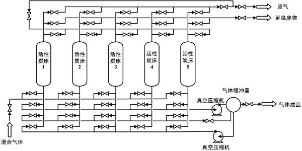 圖1:活性炭真空變壓吸附過程的示意流程圖。