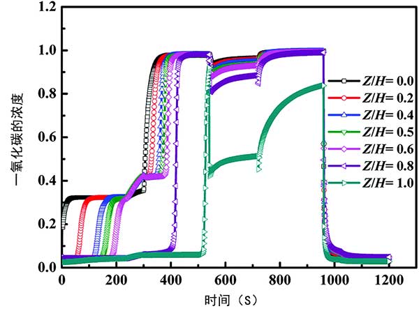 循環(huán)中活性炭床軸向CO濃度的變化