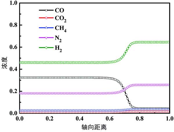 活性炭吸附步驟后CO,CO 2,CH 4,N 2和H 2的軸向濃度分布在圖4標(biāo)記?梢钥闯,活性炭吸附步驟后,Z/H=0.00-0.60的吸附床達到飽和,CO,CO 2,CH 4,N 2和H 2的濃度不隨軸向距離變化床的一部分,與進料氣中各組分的濃度一致。并且在Z/H的不飽和吸附床中>0.60,隨著床軸距的增加,CO濃度逐漸降低,其他成分濃度逐漸增加。最后,所有組分的濃度趨于穩(wěn)定。