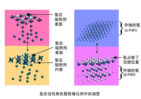 圖3:氫氣在活性炭負(fù)載鈀催化劑上的演變概述。