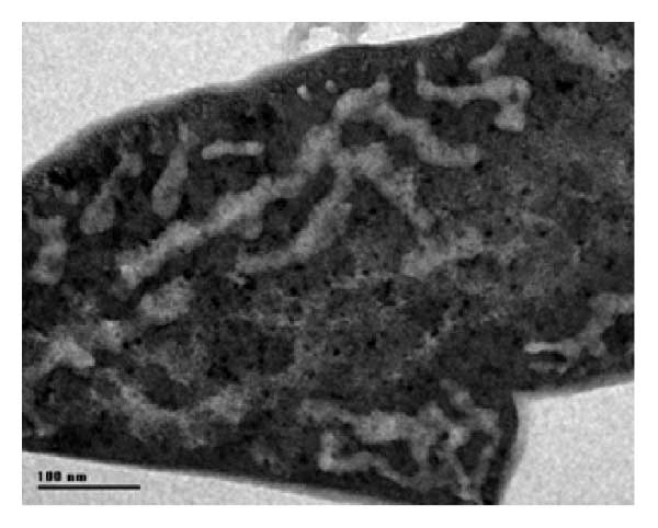 圖5:吸附有機物后活性炭的TEM圖像。