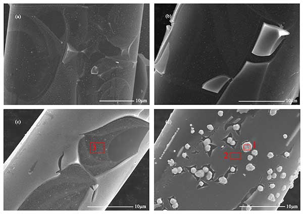 圖1:不同銀含量的活性炭纖維的場(chǎng)發(fā)射掃描電子顯微鏡(FESEM)圖像。