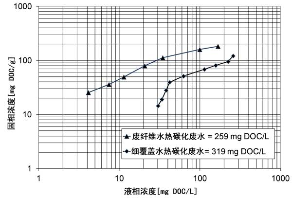 圖1:預(yù)處理過的水熱碳化廢纖維和細(xì)覆蓋處理水的總體等溫線的比較。