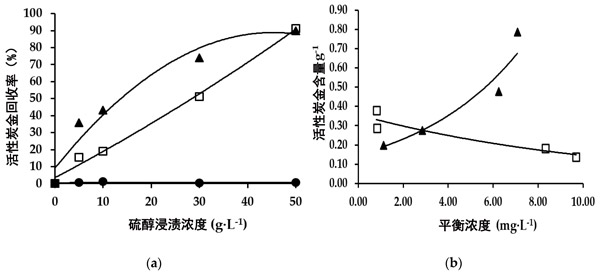 圖2:浸有硫代乙醇酸的活性炭吸附金(a)金的回收曲線(b)等溫線。