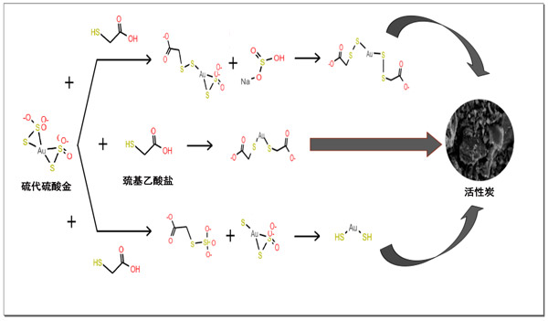 圖3:在水溶液中與硫代乙醇酸一起攪拌的未改性活性炭回收金的建議機(jī)理。